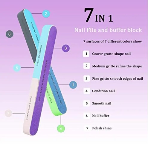 Summary: Introducing the 7 in 1 Nail File and Buffer Block, a professional manicure tool designed to provide 7 steps of nail buffering for a flawless finish. This washable emery board is perfect for nail and cuticle care, offering a convenient and effective solution for maintaining beautiful nails. With its ergonomic design and high-quality materials, this nail buffer block is a must-have for any beauty and makeup enthusiast. Achieve salon-quality results at home with this versatile and easy-to-use tool.