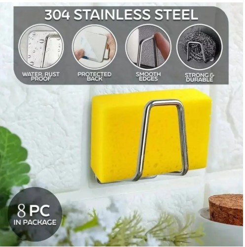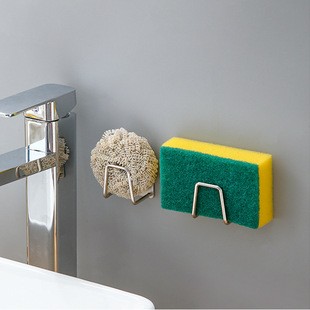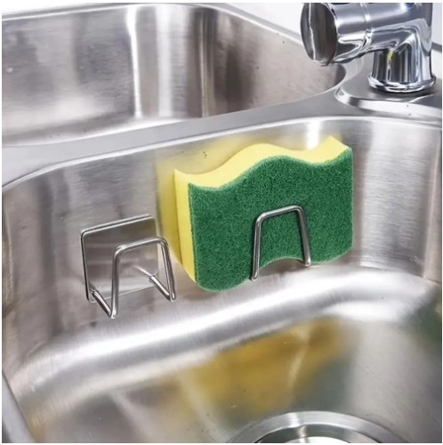 • Stainless steel sponge rack for kitchen sink organization.