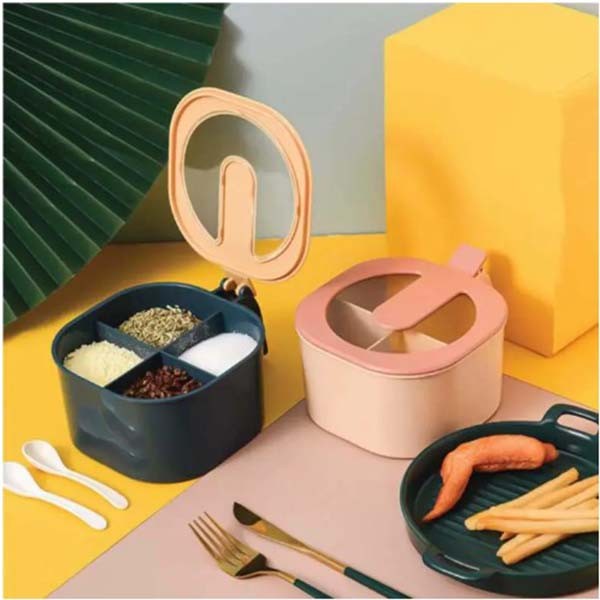 • Multi Storage 4 Section Kitchen Spices Lid Box.